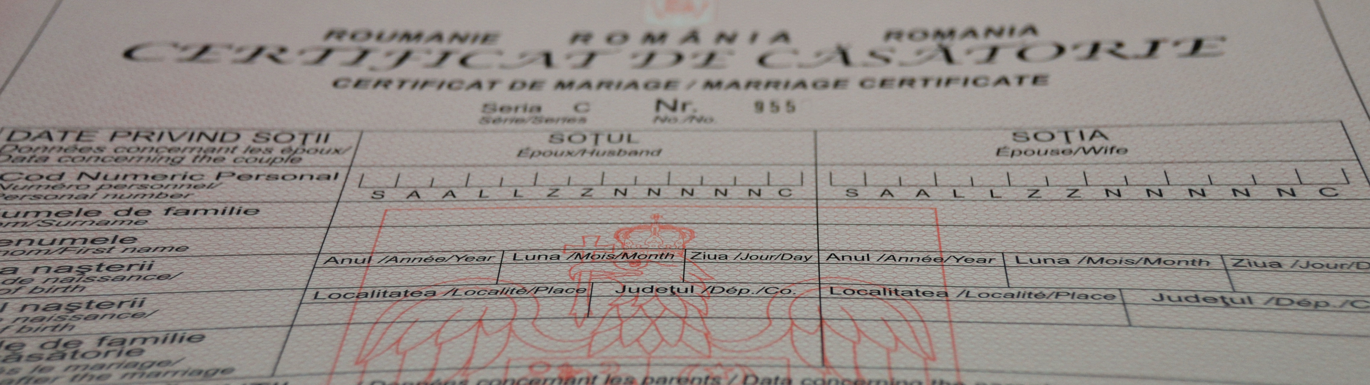 - actul de căsătorie se semnează de către soţi, cu numele de familie pe care s-au învoit să-l poarte în timpul căsătoriei
